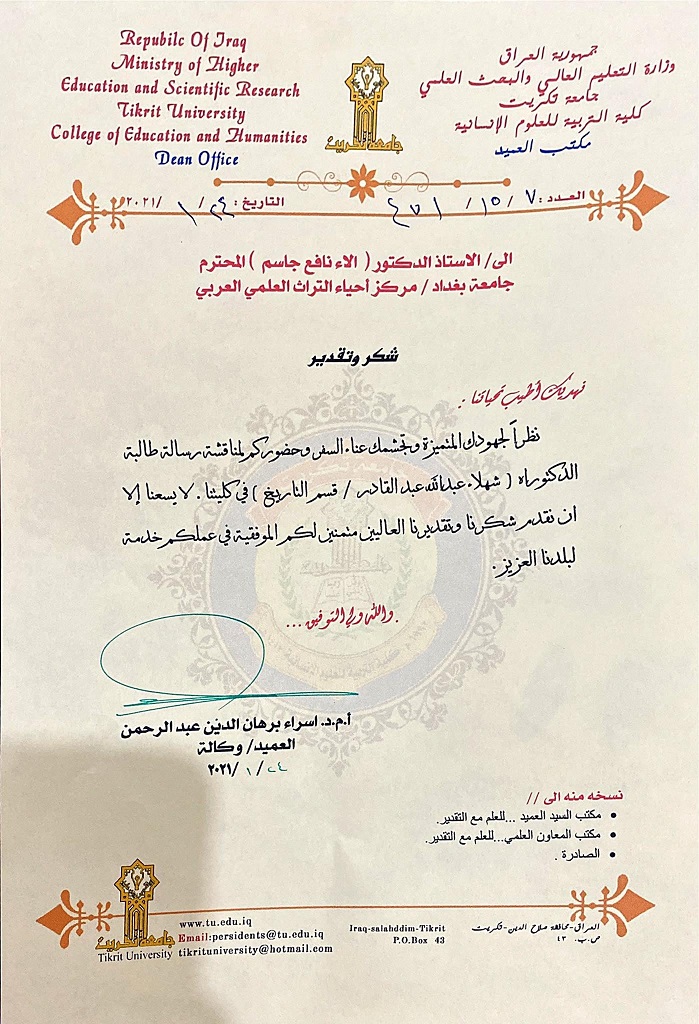الاء 2 Date 03/02/2021 Share: rashc مركز احياء التراث العلمي العربي مركز يعنى بالتراث العربي You may also like تدريسية من مركز احياء التراث تشارك في مؤتمر الكتروني 15 أغسطس, 2021 تدريسية من مركز احياء التراث تشارك في ندوة 15 أغسطس, 2021 زيارة ميدانية 11 أغسطس, 2021