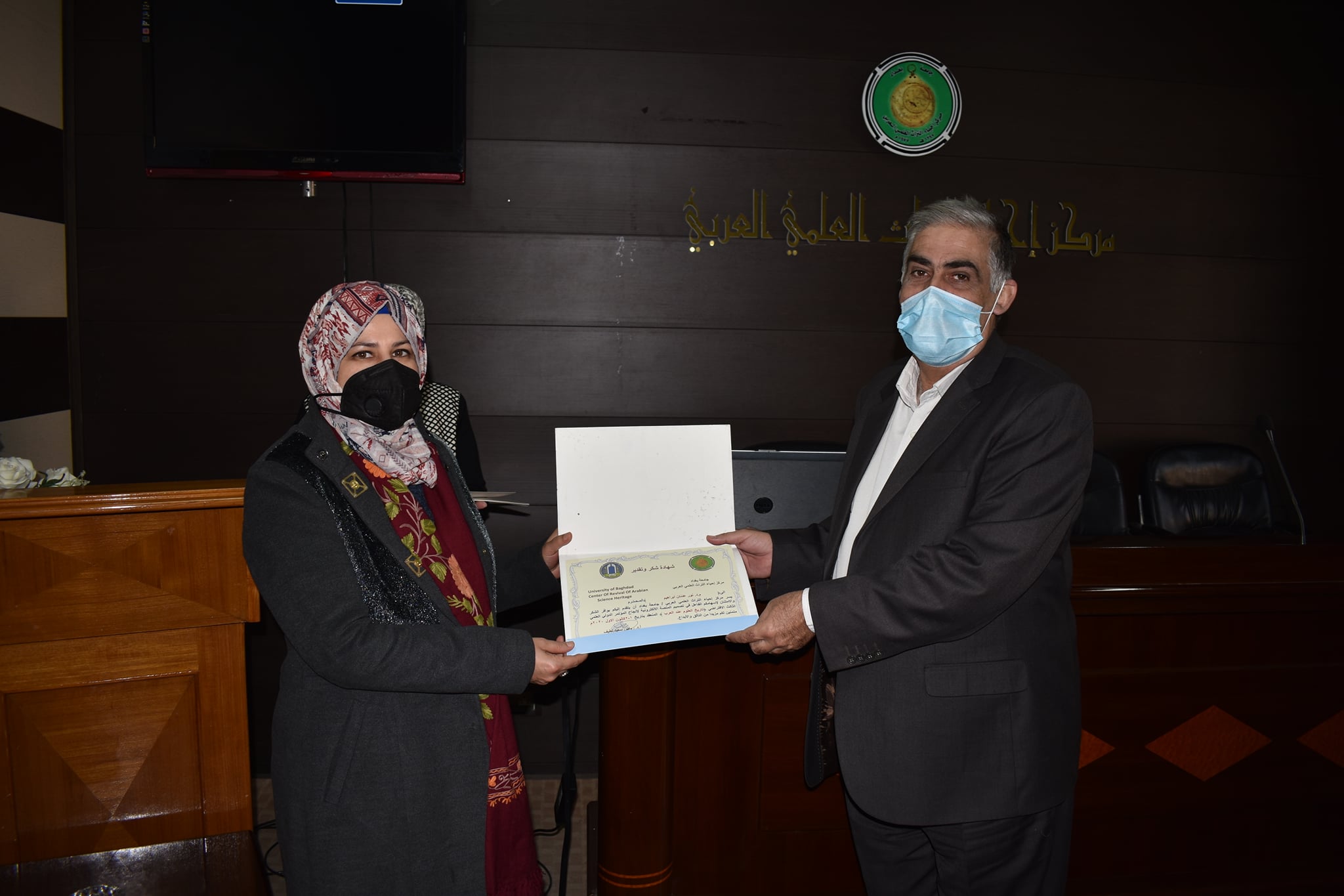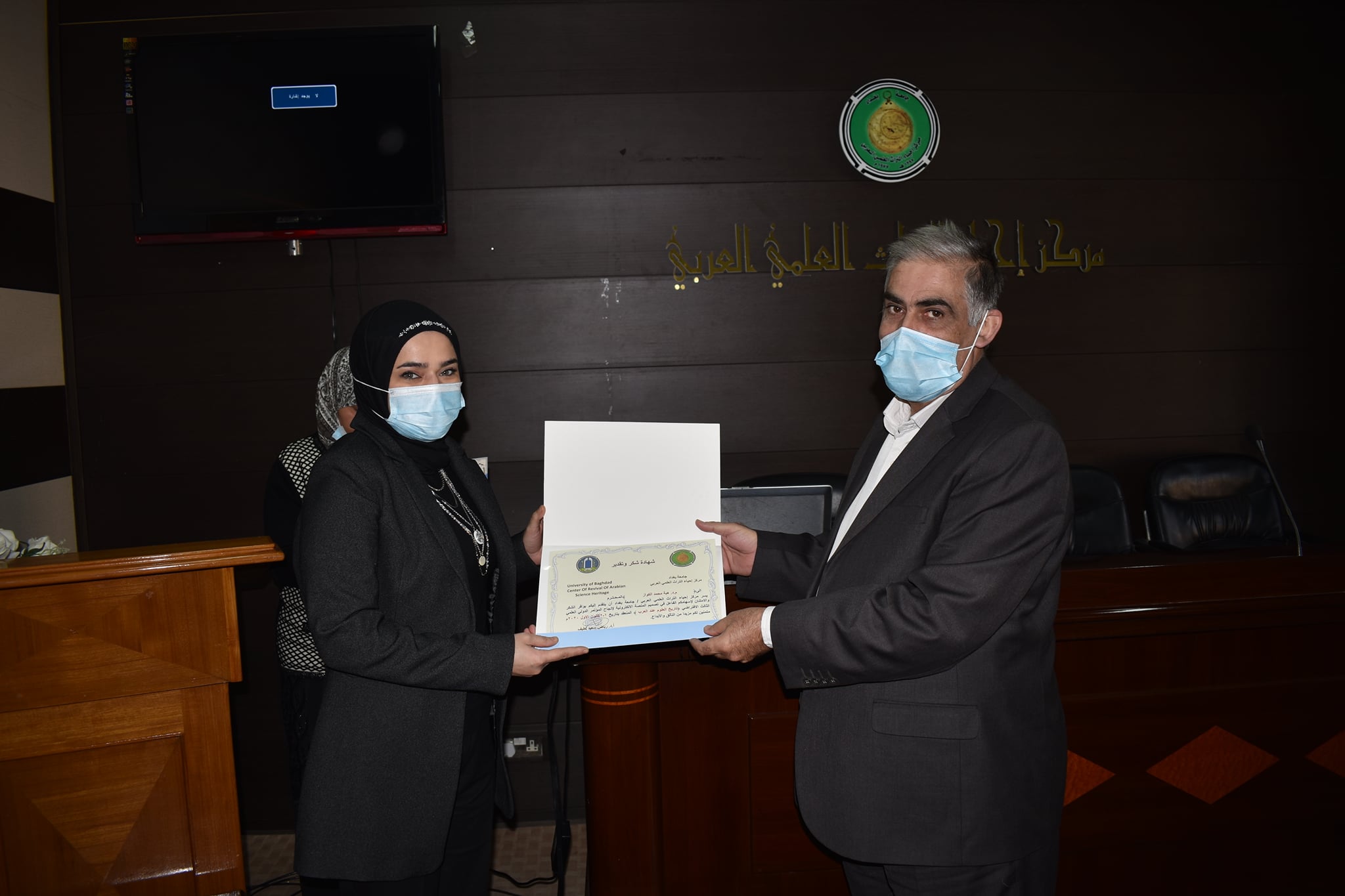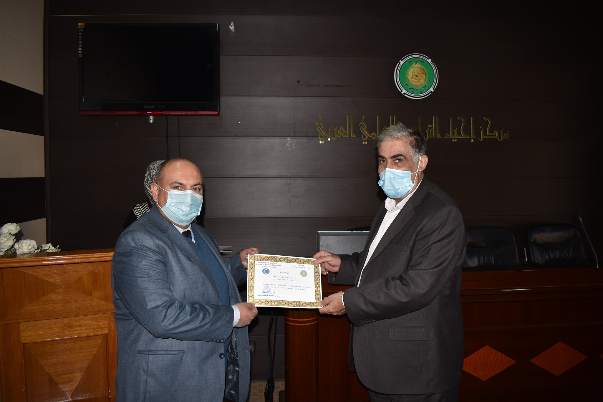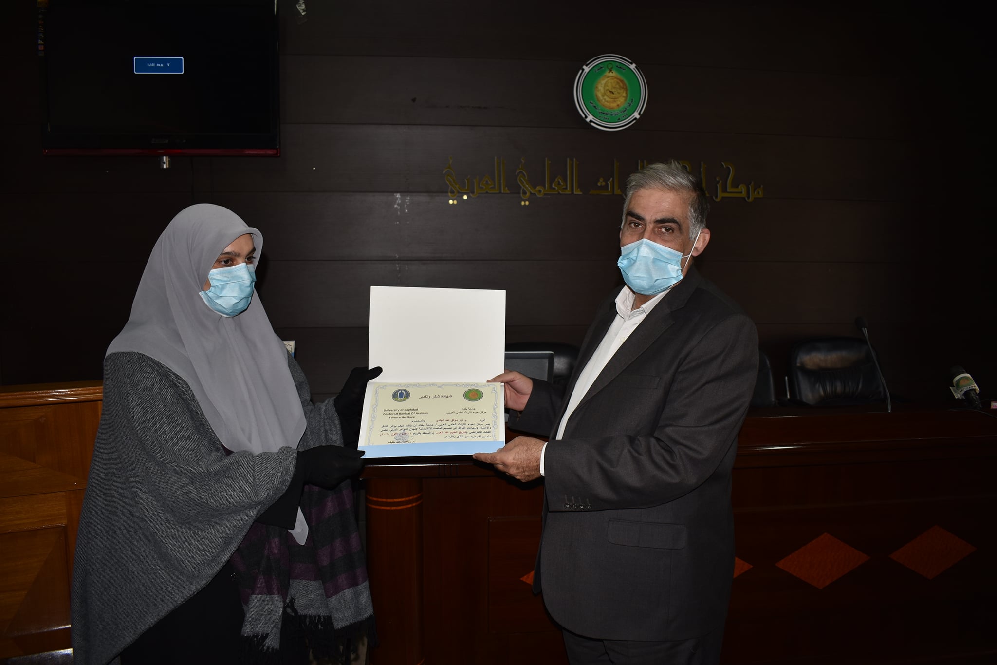 اقام مركزنا مركز احياء التراث العلمي العربي اليوم الاحد الموافق 13/12/2020وعلى قاعة المركز احتفالية توزيع الشهادات التقديرية للقائمين على اعمال مؤتمره الدولي العلمي الثالث الافتراضي ( تاريخ العلوم عند العرب)
