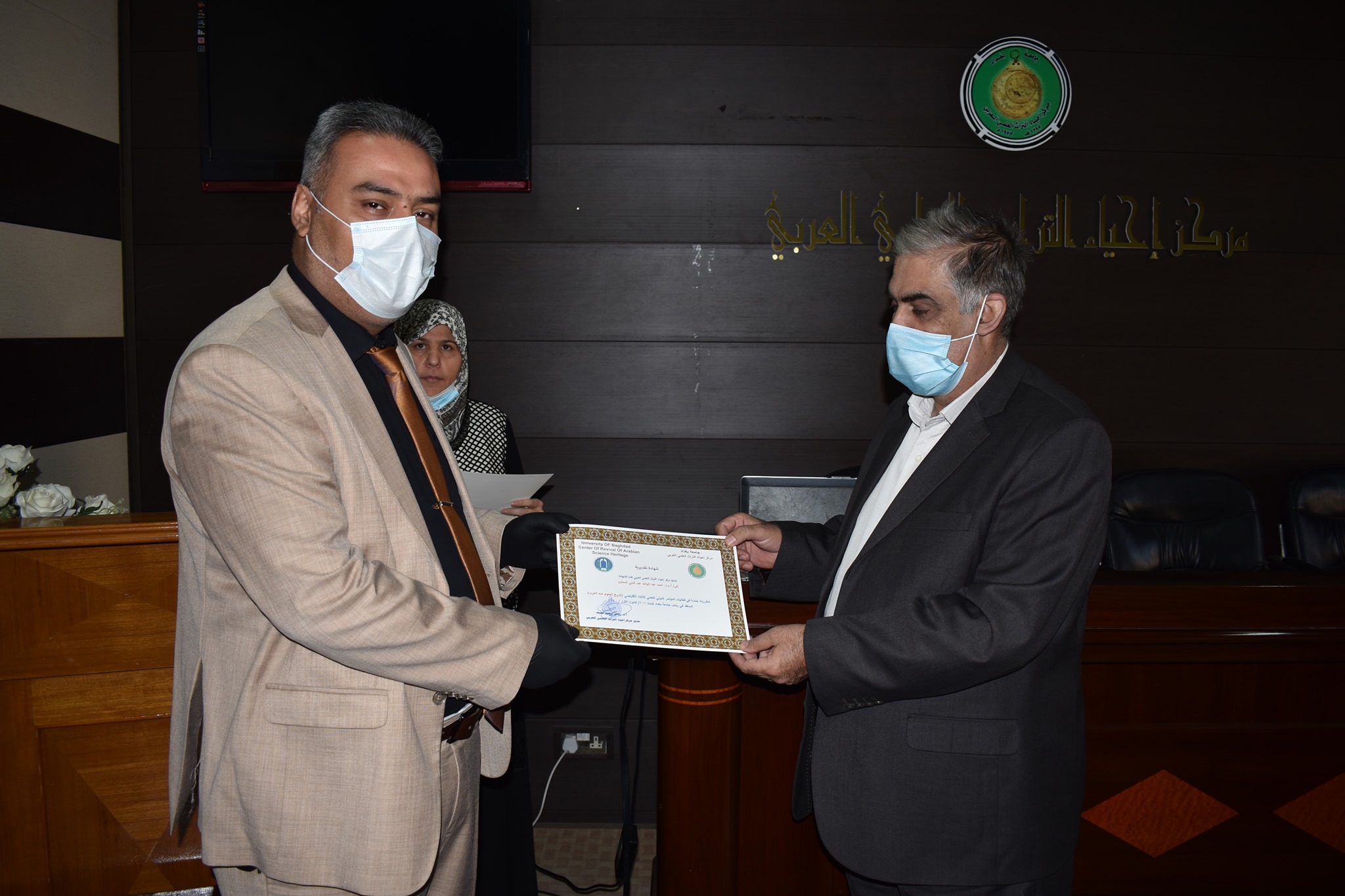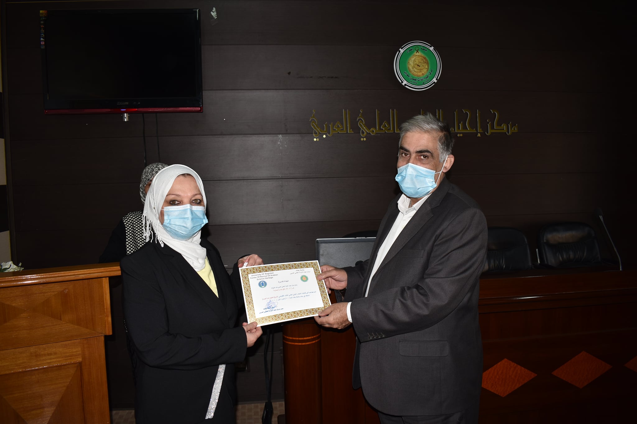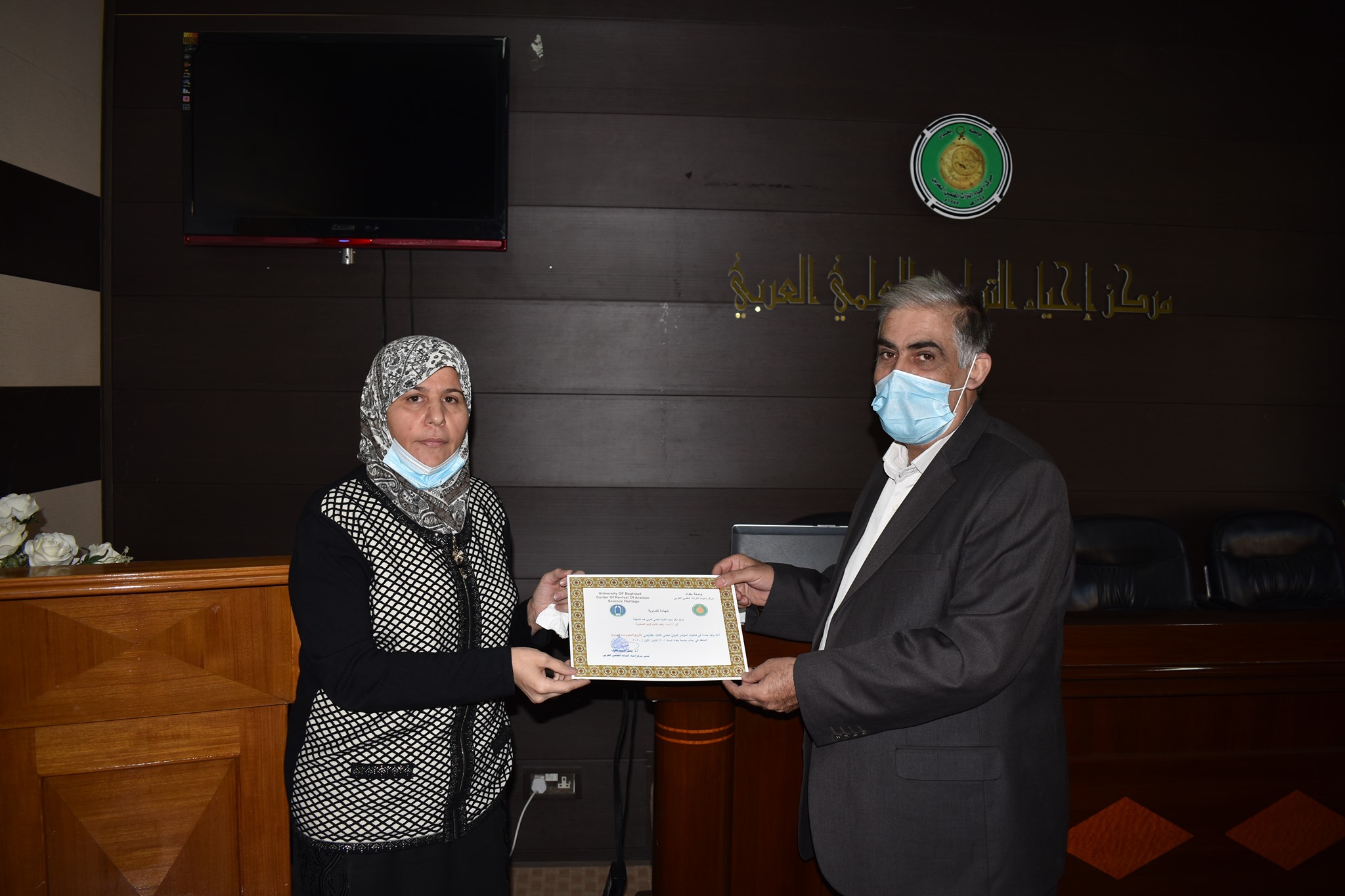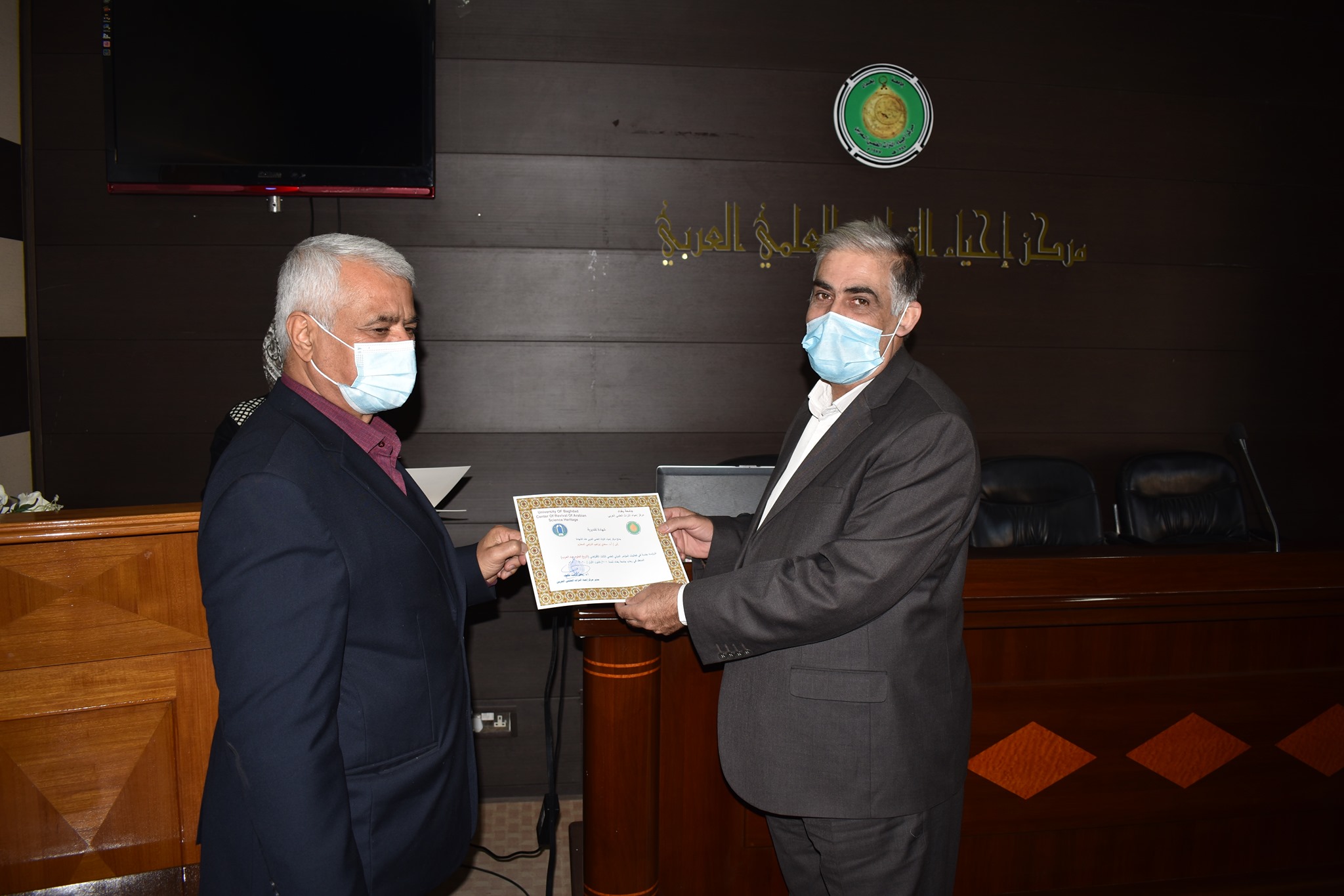 اقام مركزنا مركز احياء التراث العلمي العربي اليوم الاحد الموافق 13/12/2020وعلى قاعة المركز احتفالية توزيع الشهادات التقديرية للقائمين على اعمال مؤتمره الدولي العلمي الثالث الافتراضي ( تاريخ العلوم عند العرب)