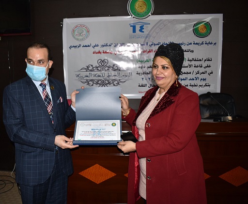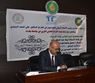 بالرغم من الظروف التي يمر بها بلدنا العزيز من تفشي جائحة فيروس كورونا ومن اجل اكمال المسيرة العلمية بدون توقف وبرعاية كريمة من رئيس الاتحاد الدولي للمبدعين في العراق الدكتور علي احمد الزبيدي المحترم وبالتعاون مع مركز احياء التراث العلمي العربي وباشراف مديرالمركز الاستاذ الدكتور رياض سعيد لطيف المحترم نظم مركزنا يوم الاحد الموافق 20/12/2020 وعلى قاعة الاستاذة نبيلة احتفالية بعنوان ( اليوم العالمي للغة العربية ) حيث افتتحث الاحتفالية بقراءة سورة من القرأن الكريم تلاها الدكتور عبد الله كامل ومن ثم قرأة سورة الفاتحة على ارواح شهدائنا الابرار ومن ثم الكلمة الترحيبية باليوم العالمي للغة العربية للأستاذ الدكتور( صفاء عبيد الحفيظ ) التدريسي في كلية التربية للعلوم الإنسانية بجامعة بابل وألقى رئيس الاتحاد الدولي للمبدعين في العراق مرحباً باساتذة وموظفي مركز احياء التراث حيث لا يخفى على حضراتكم مكانة العلم والعلماء في المجتمعات المتحضرة ، ودورهما في بناء البلد، وزجه في عجلة التطور لمواكبة البلدان المتقدمة التي تنعم بمنجزاتها الفكرية والعلمية والثقافية. نجتمع اليوم في هذه القاعة المباركة للاحتفاء في مناسبة عطرة وجميلة تفوح منها رائحة العلم والابداع . مناسبة تجمع العلم والعلماء تجمع الشعر والشعراء.. نفتخر ونتغنى نحن وجميع بلداننا العربية في (اليوم العالمي للغة العربية) ، الذي يعد الحدث الاهم في تاريخ البشرية جمعاء خاصة ان اللغة العربية هي لغة لقرآن لا بل لغة اهل الجنة ولغة رسولنا الكريم محمد (ص) ثم ألقى مدير مركز إحياء التراث العلمي العربي كلمة بهذه المناسبة مرحباً بالضيوف الكرام ..اذ تمر اليوم علينا مناسبة جميلة وكبيرة إلا وهي ( اليوم العالمي للغة العربية ) جعلها الله لغة مباركة لأنها لغة القرآن .. حفظها الله بحفظه .. وآدامها بتوفيق المبدعين والمختصين من اعلام اللغة العربية فبارك الله بهم وباركهم بها .واشاد ايضاً على هذه المبادرة العلمية فهي لغة الضاد و لغة الابداع والجمال و لغة القرأن الغنية بالمفردات والمعاني . وتضمنت الاحتفالية نشاطات قدمها الأساتذة المكرمين ابتدأت بقصيدة شعرية ألقاها الشاعر حسن عبد راضي وعنوانها( لسان الوحي)
