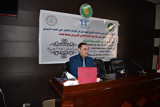 وقدم الأستاذ الدكتور (علي حداد حسين ) التدريسي في مركز إحياء التراث العلمي العربي بجامعة بغداد كلمة عن ( تحديات اللغة العربية قديماً وحديثاً) متحدثاً تعرضت اللغة العربية على مدار سيرتها إلى تحديات عدّة من بينها مساعي اللغات الاخرى التي جاءت مع أقوام هجنت على معظم الأراضي العربية ، وكذلك ظهور اللهجات العربية الشعبية المختلفة . وقد استطاعت لغتنا العربية أن تتجاوز تلك التحديات وتبقى فاعلة ومعطاءة ولغة للمعارف والعلوم والآداب .